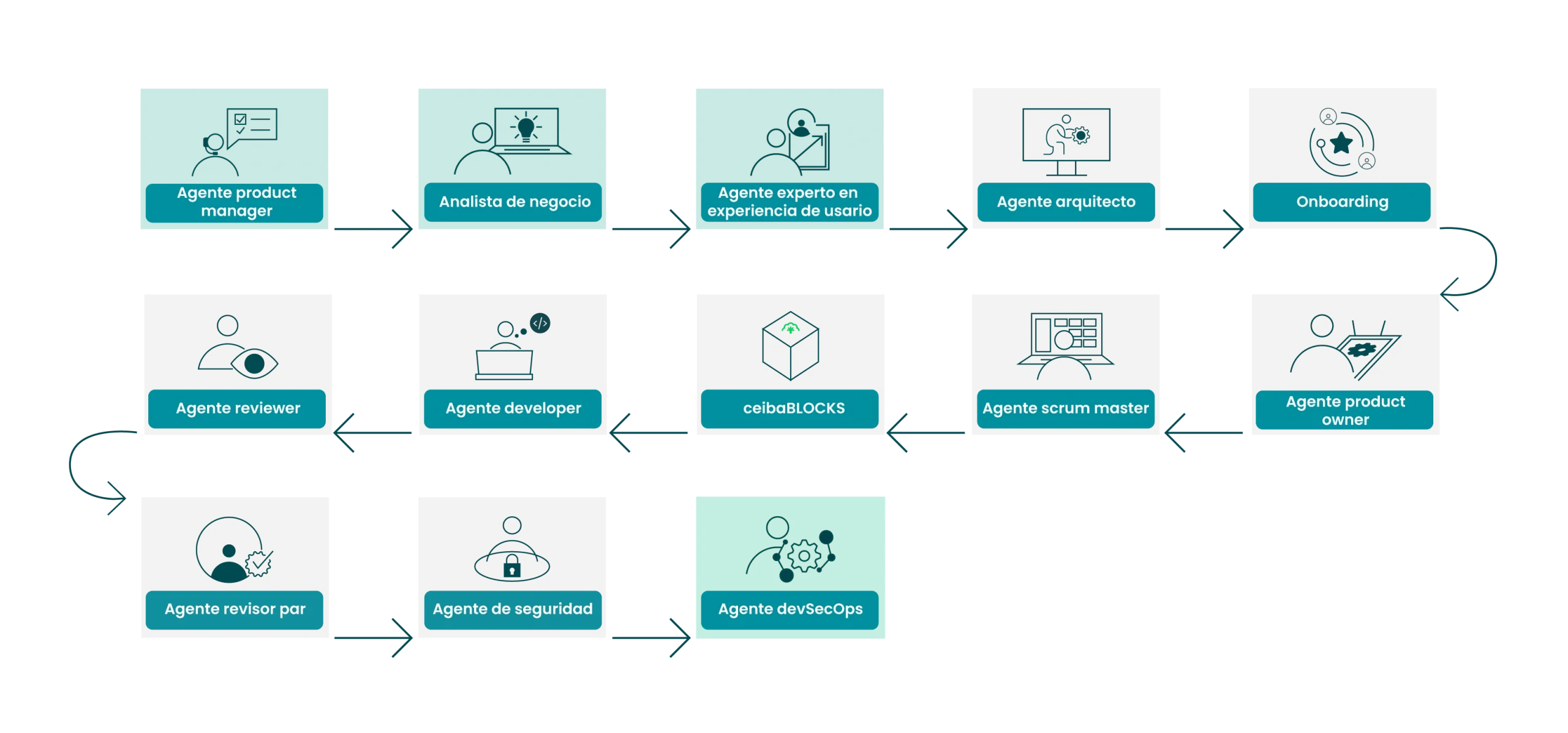 Estos agentes automatizan y supervisan tareas críticas en todo el ciclo de vida, desde el análisis estratégico hasta las pruebas de seguridad.